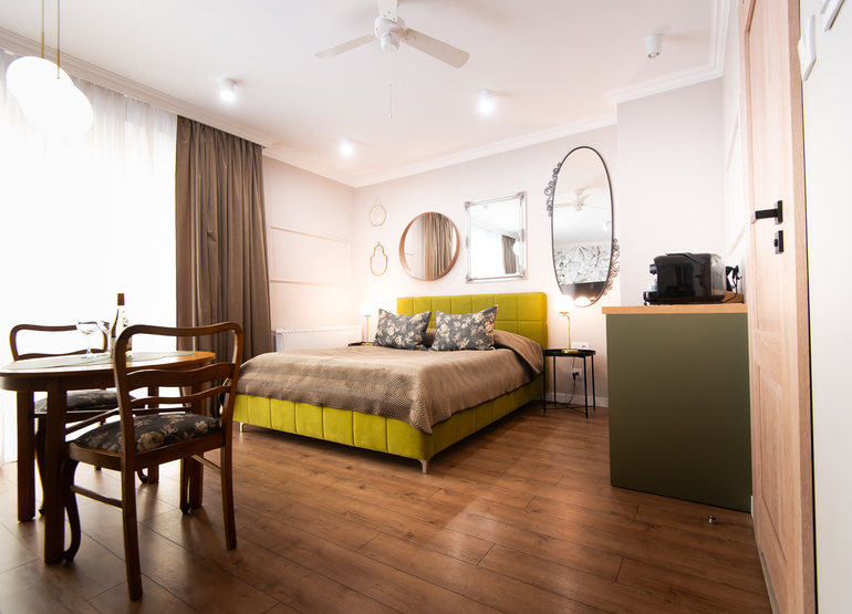 Miejsce znacznie przewyższyło nasze oczekiwania, pokój, a właściwie mieszkanko, ładne, czyste i zadbane. Lokalizacja genialna! I do tego przepyszne śniadanie. Jeżeli jeszcze kiedyś odwiedziny Łódź to napewno będziemy nocować w tym miejscu!